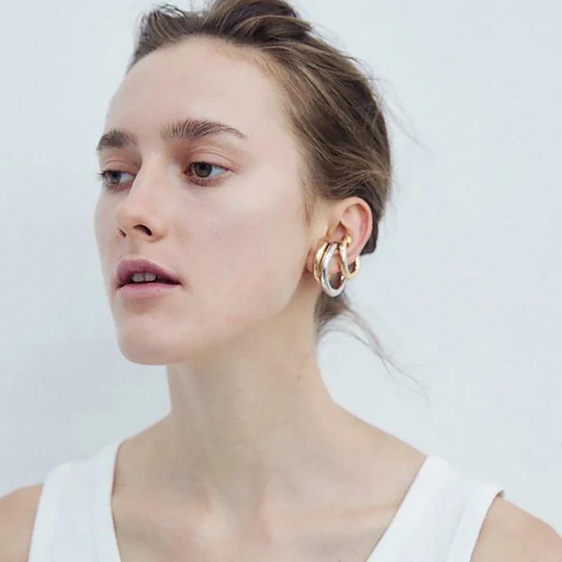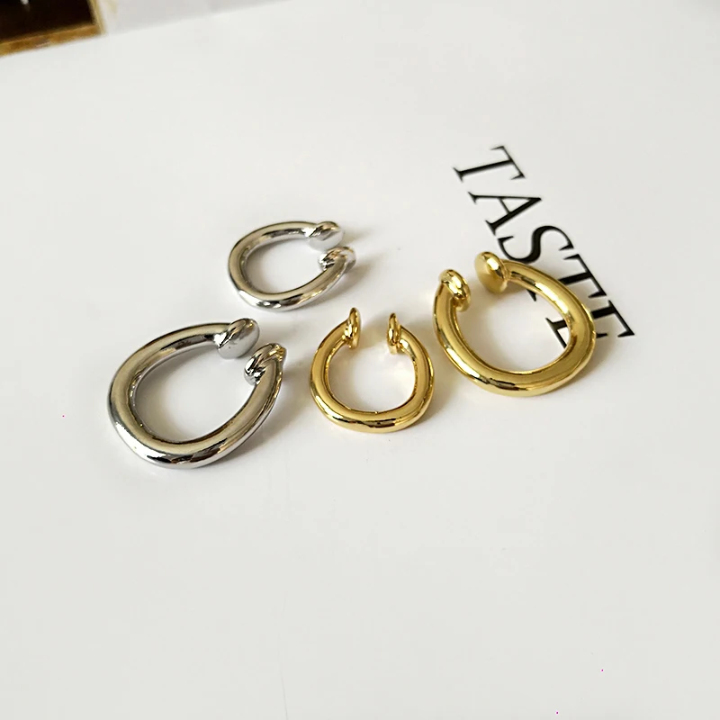 Модные серьги-клипсы Peri'sBox, твердые золотистые, геометрические, Круглые, для ушей, долговечные, без пирсинга