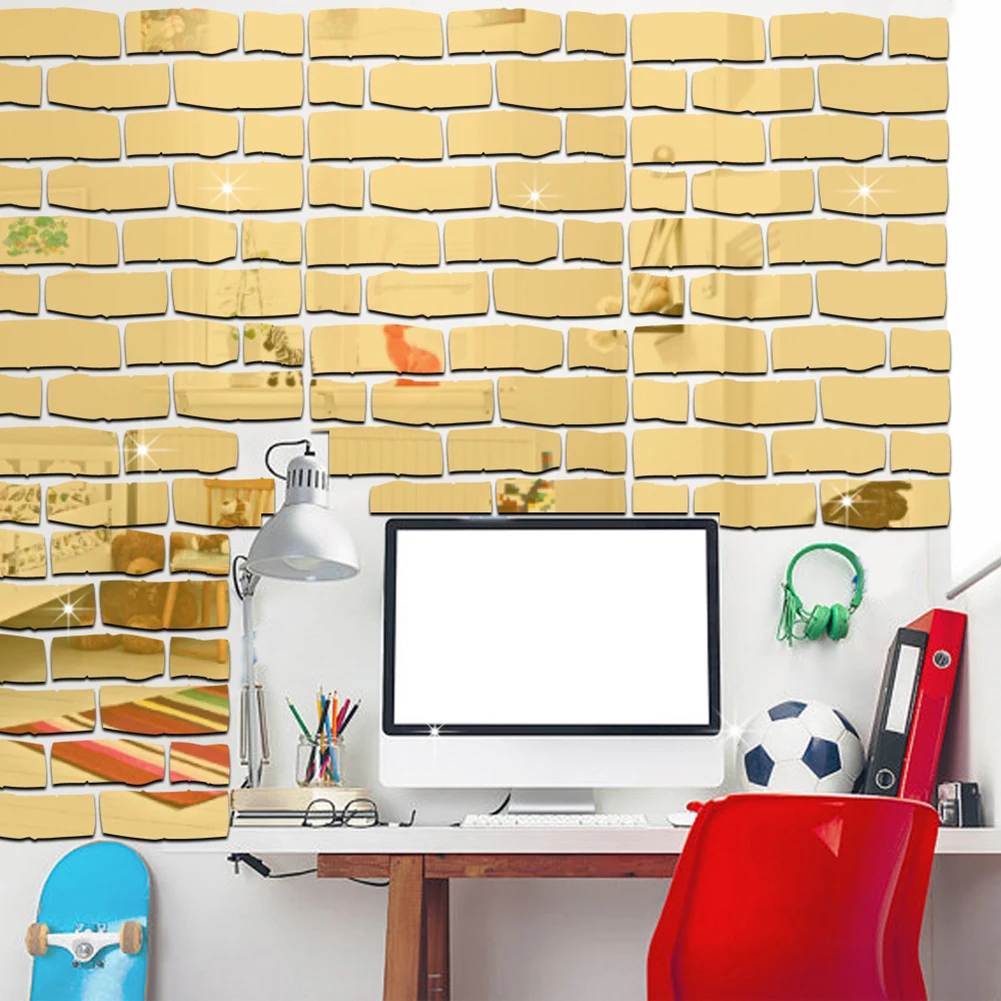 Горячая Распродажа, 24 шт., Современная Зеркальная Наклейка на стену в форме кирпича, самоклеящаяся акриловая Зеркальная Наклейка для детской комнаты, домашнего декора, ванной комнаты