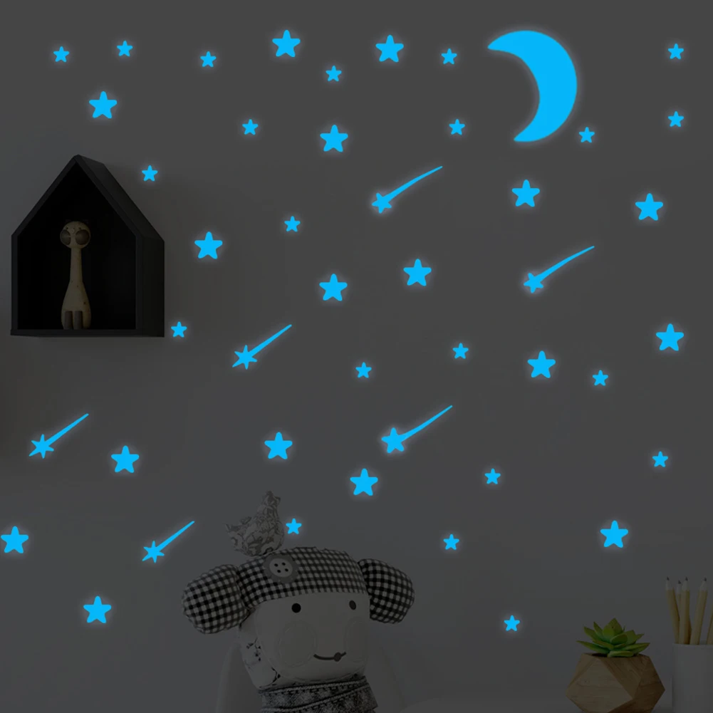 108 шт. синие светящиеся звезды и луна наклейки на стену s светится в темноте, Потолочная Настенная Наклейка s, декор для детской спальни, блестящая Наклейка на стену со звездой