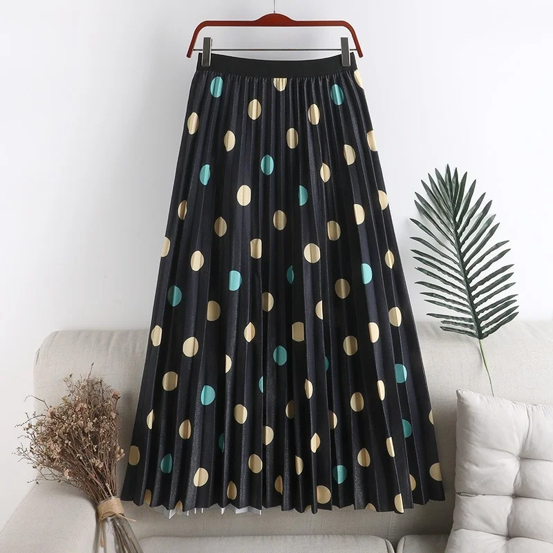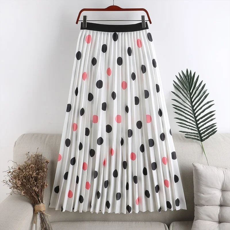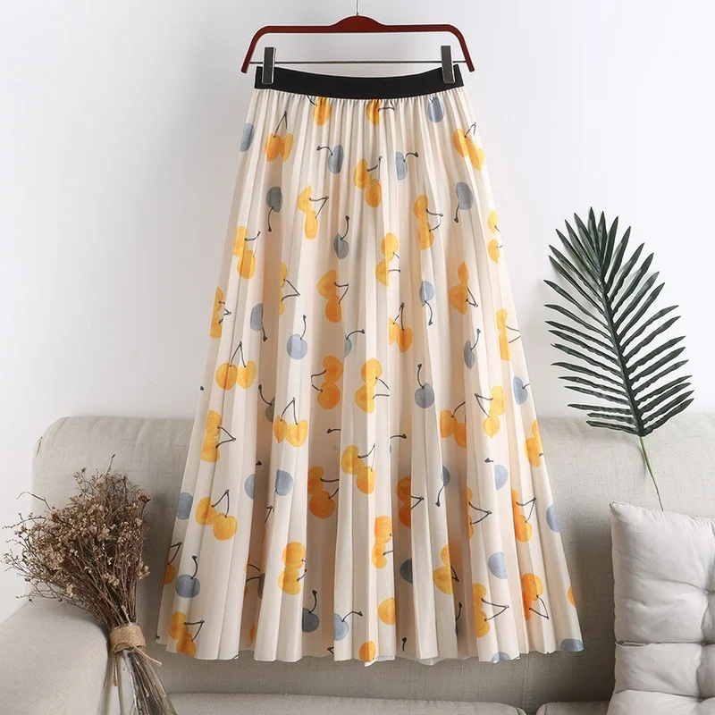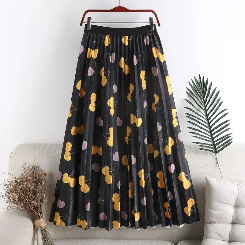 Женская плиссированная юбка средней длины с высокой талией и цветочным принтом