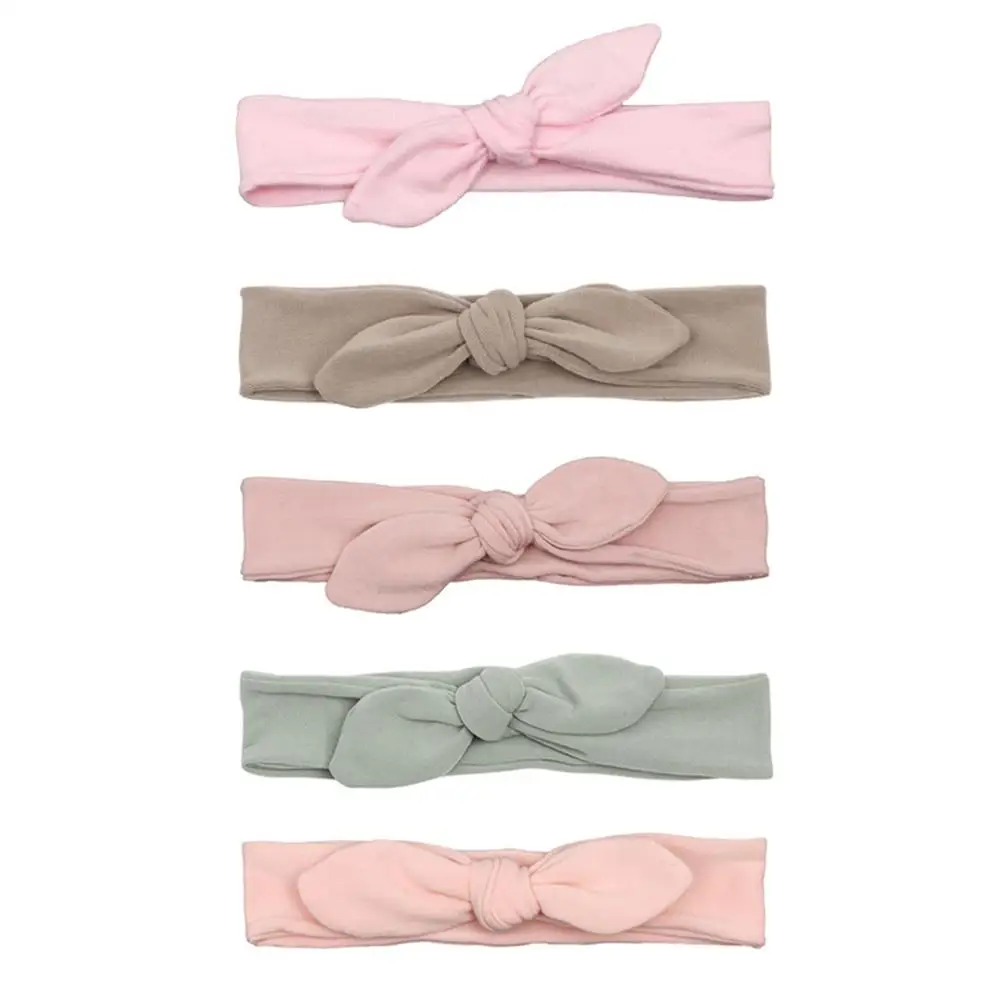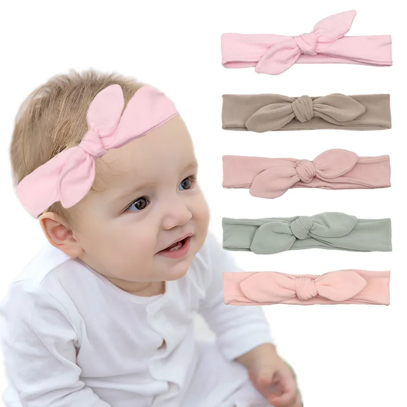 Однотонные хлопковые детские повязки на голову с кроличьими ушками для девочек, эластичная регулируемая повязка для волос ручной работы, аксессуары для волос для новорожденных