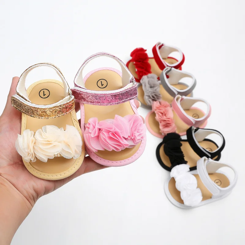 Сандалии для маленьких девочек, мягкая нескользящая подошва из хлопка, с кружевом, для младенцев, легкий вес, 6 цветов, летняя обувь