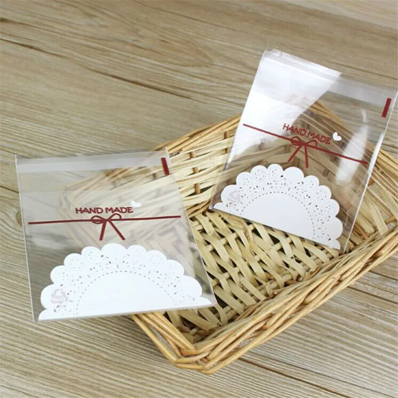 100 шт кружевные банты прозрачные самоклеющиеся подарочные пакеты для свадьбы, дня рождения, вечеринки, DIY печенье, конфетные пластиковые упаковочные пакеты