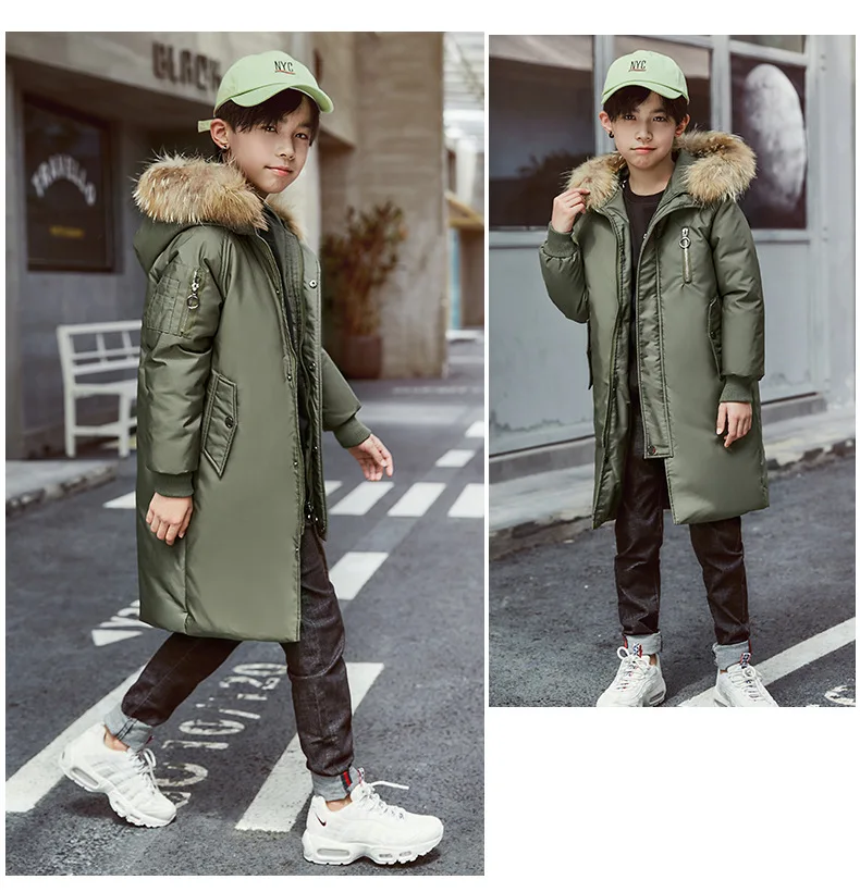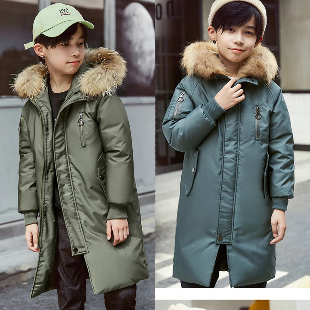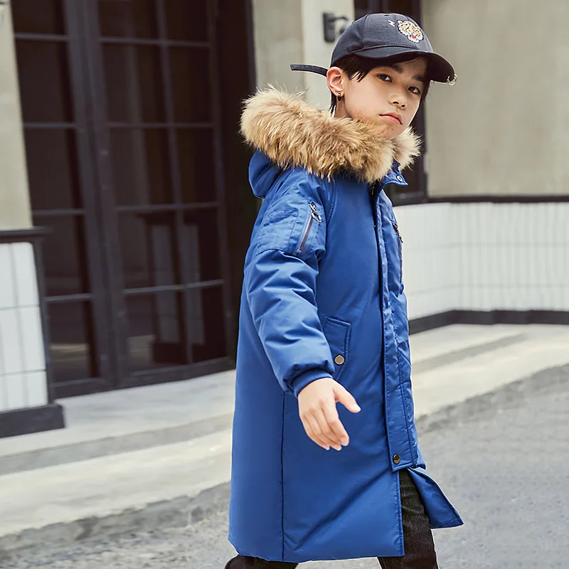 Куртка детская зимняя на утином пуху, с капюшоном, для мальчиков, для мороза до-30 градусов