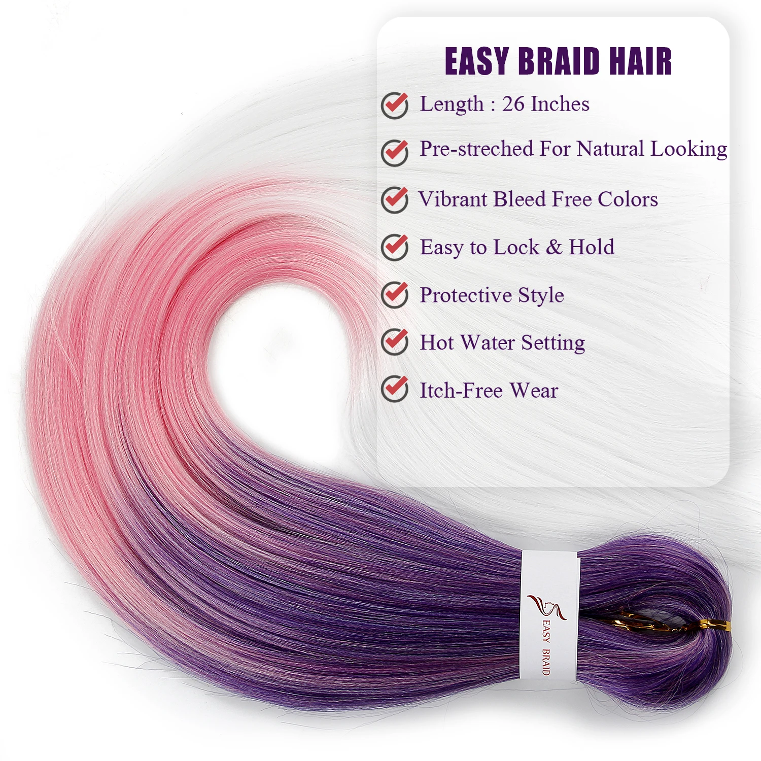 Легко Джамбо косички волос коробка косички волосы предварительно растянутые плетеные волосы синтетическое расширение 26 "омбре смешанных цветов