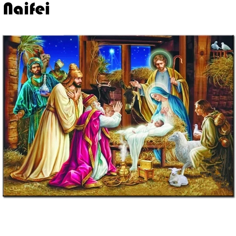 Сделай Сам квадратные круглые Алмазные Картины Иисус Христос РОЖДЕНИЕ РОЖДЕСТВО Алмазная вышивка картины рукоделие мозаика на религиозную тему