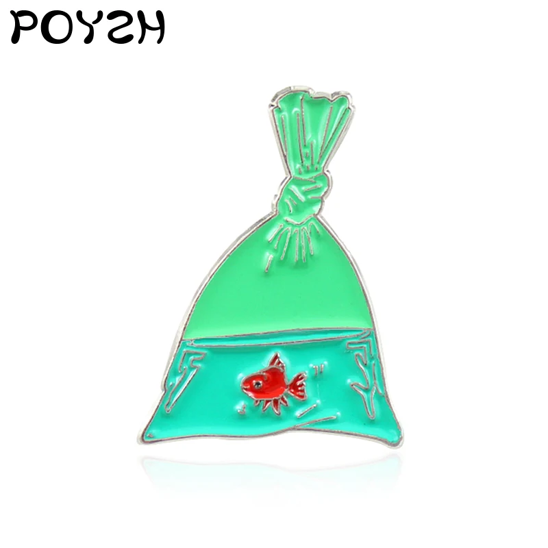 Зеленый Wate пластиковый пакет Эмаль Булавка мультфильм Золотая рыб...