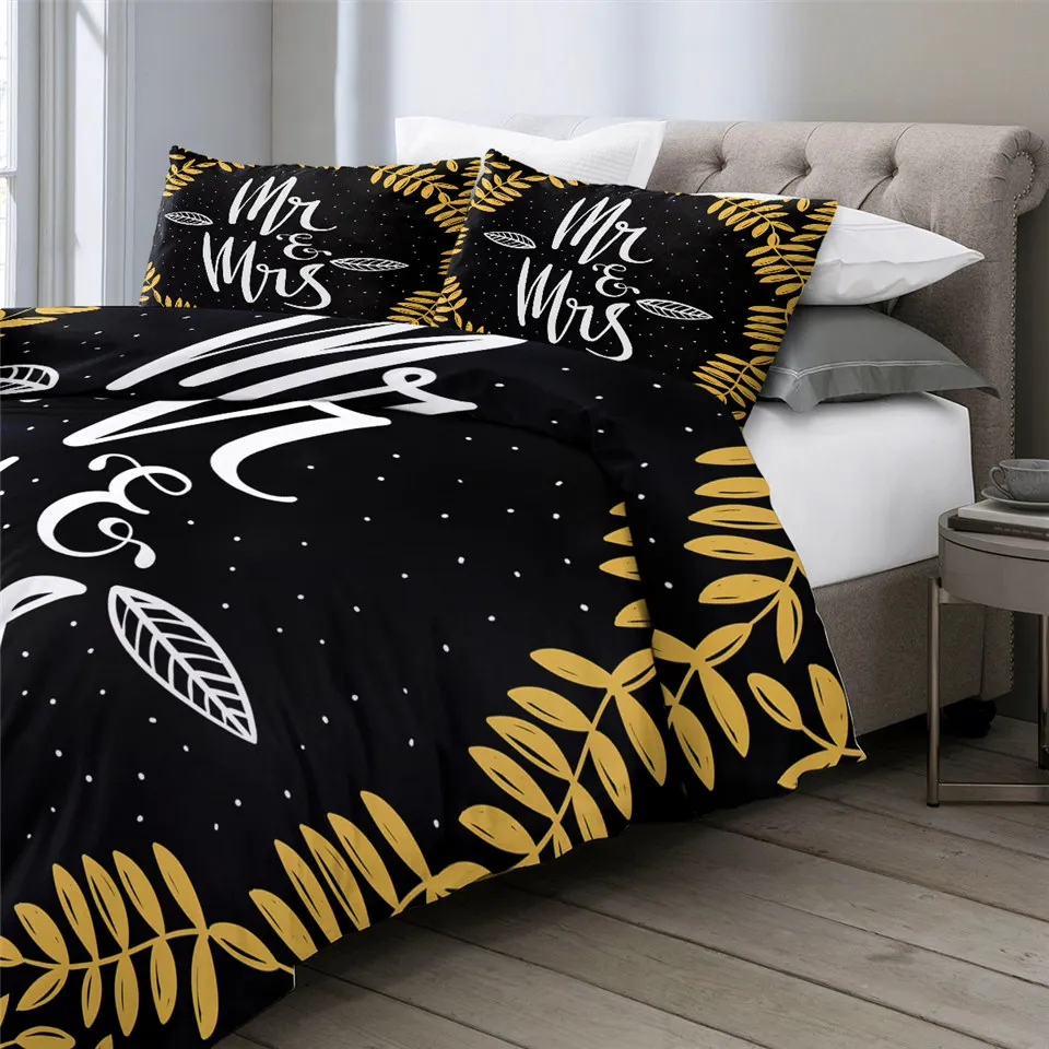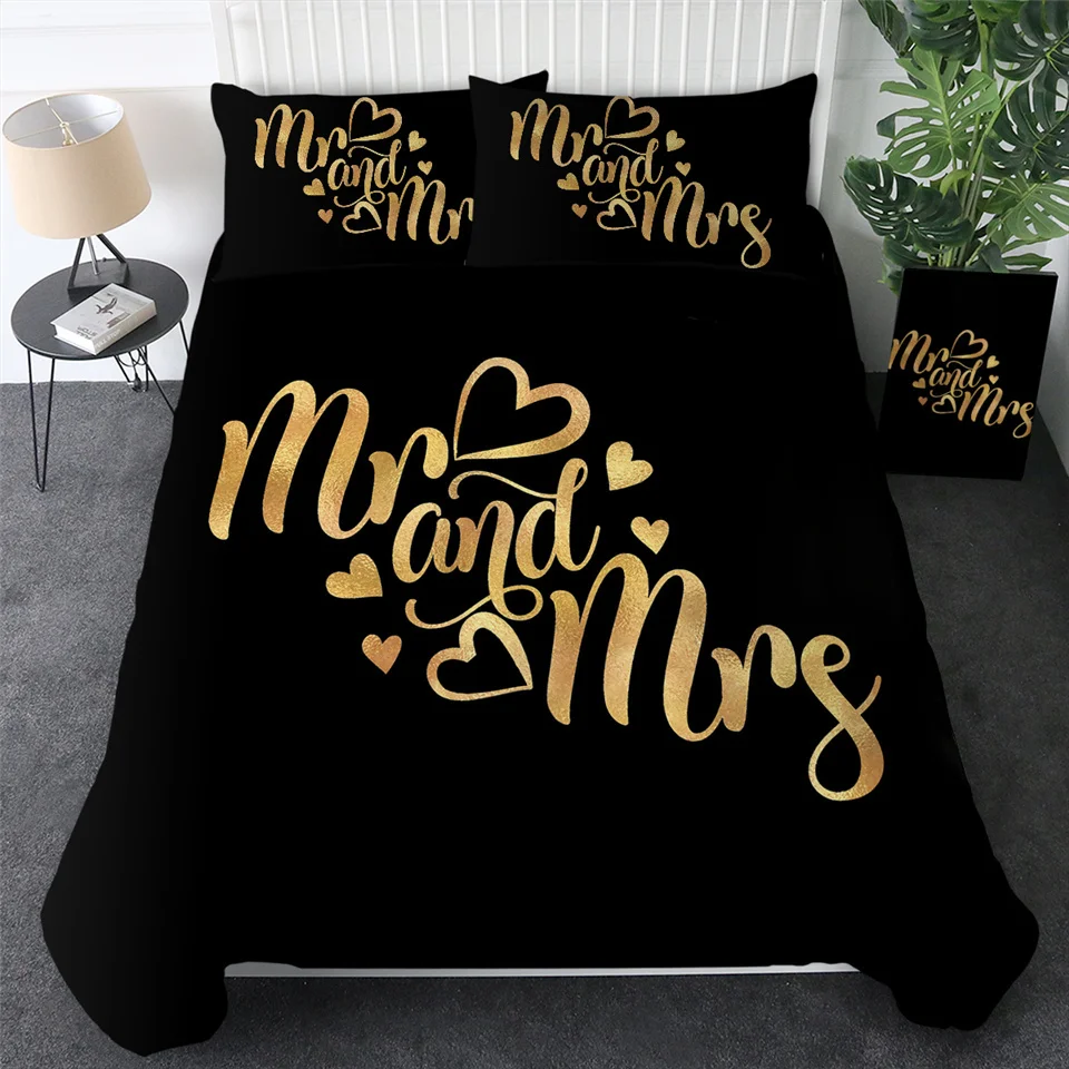 Постельные принадлежности, роскошные постельные принадлежности, романтические буквы, пододеяльник для пары, покрывала, Mr and Mrs, комплект золотой кровати, подарок на день Святого Валентина