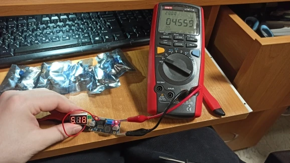 Пришли за 25 дней. Со своей задачей справляется, однако на выходе наблюдается падение напряжениеэя на 0.5 Вольта при любом раскладе и его нельзя довести резистором до начального (брал на радиорынке такой же, только шрифтом отличался, так у него выходное напряжение можно снижать начиная с максимального входного).