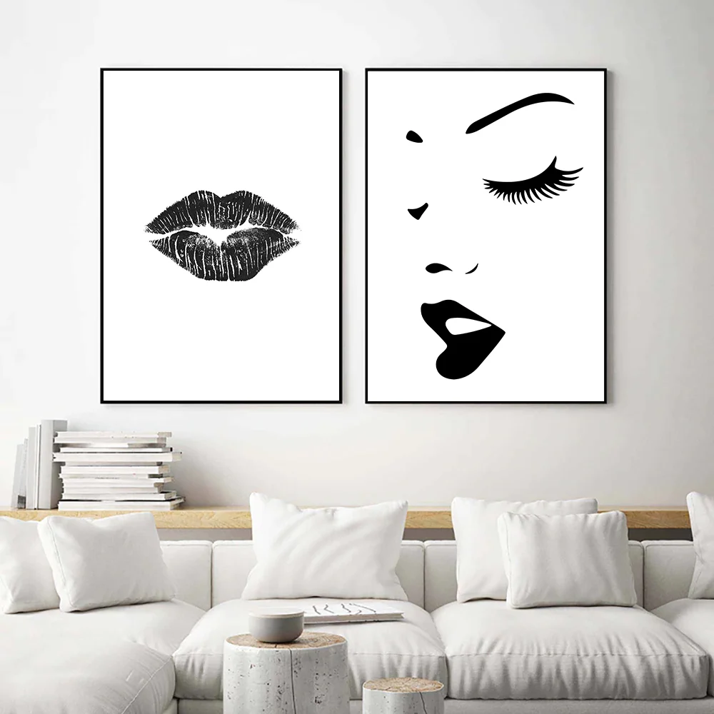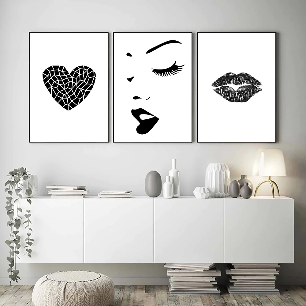Настенная модульная Картина на холсте HD изображения черно-белое сердце губы живопись абстрактный скандинавский постер для гостиной домашний декор