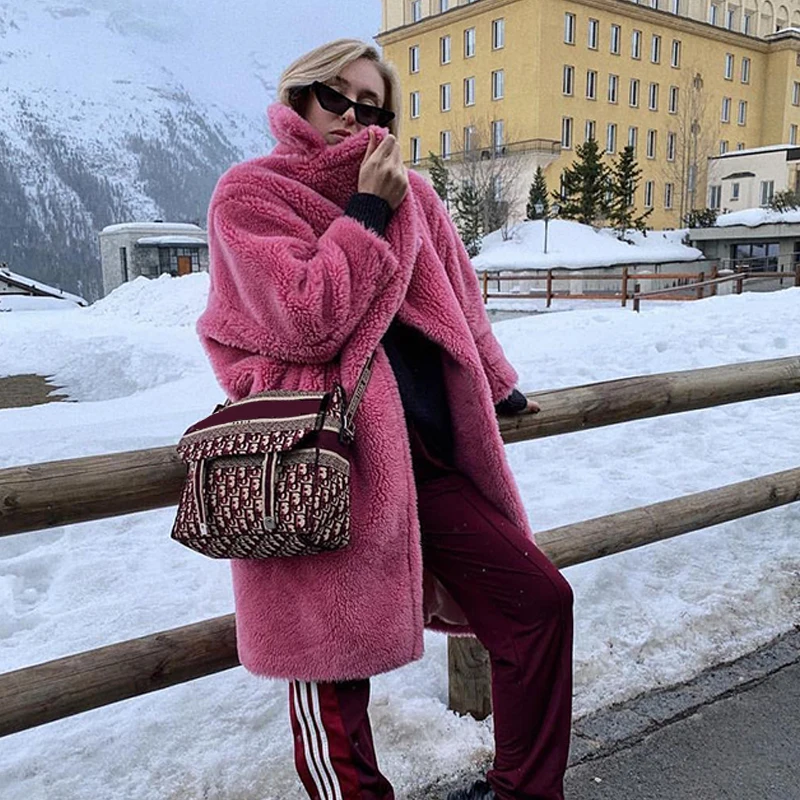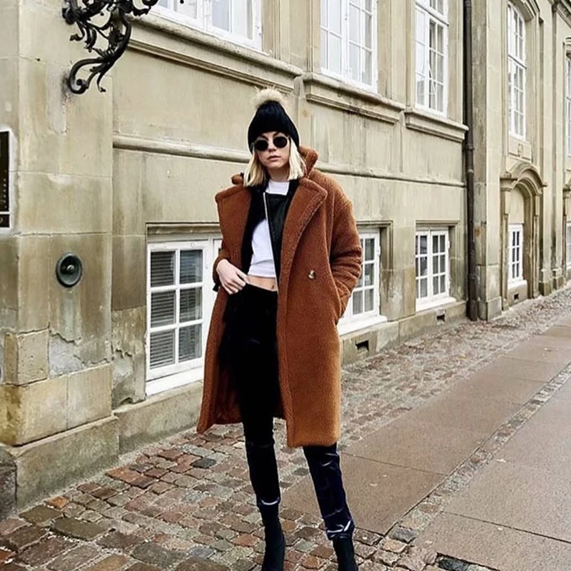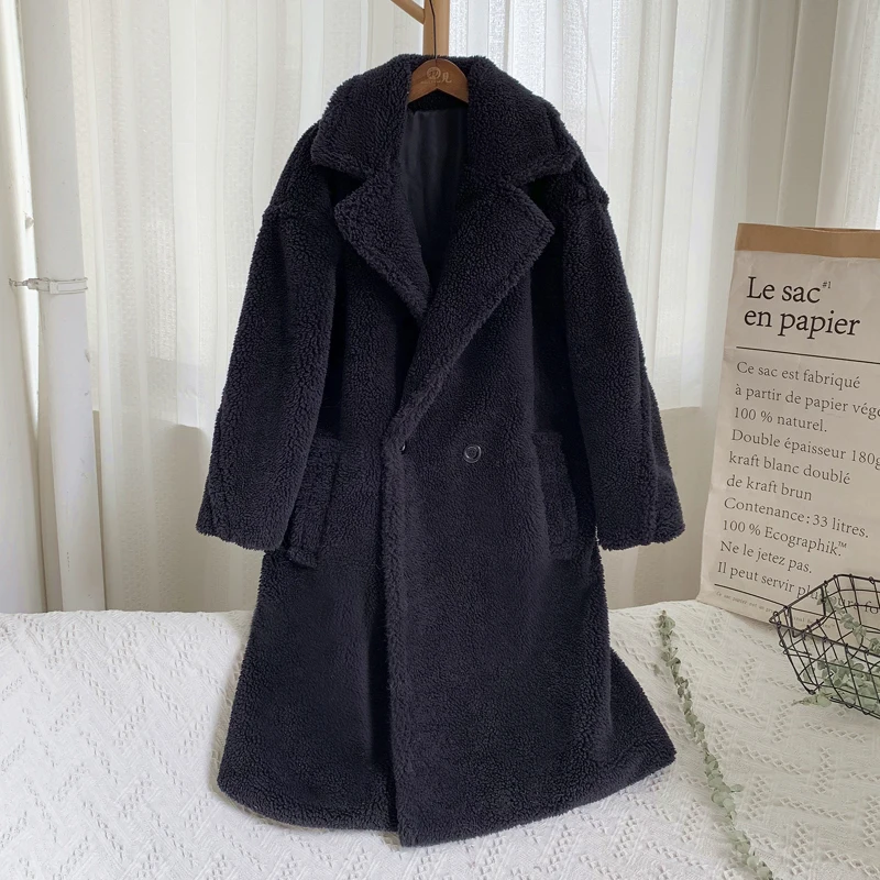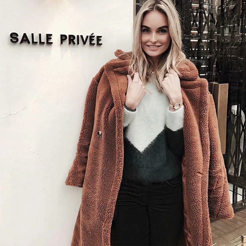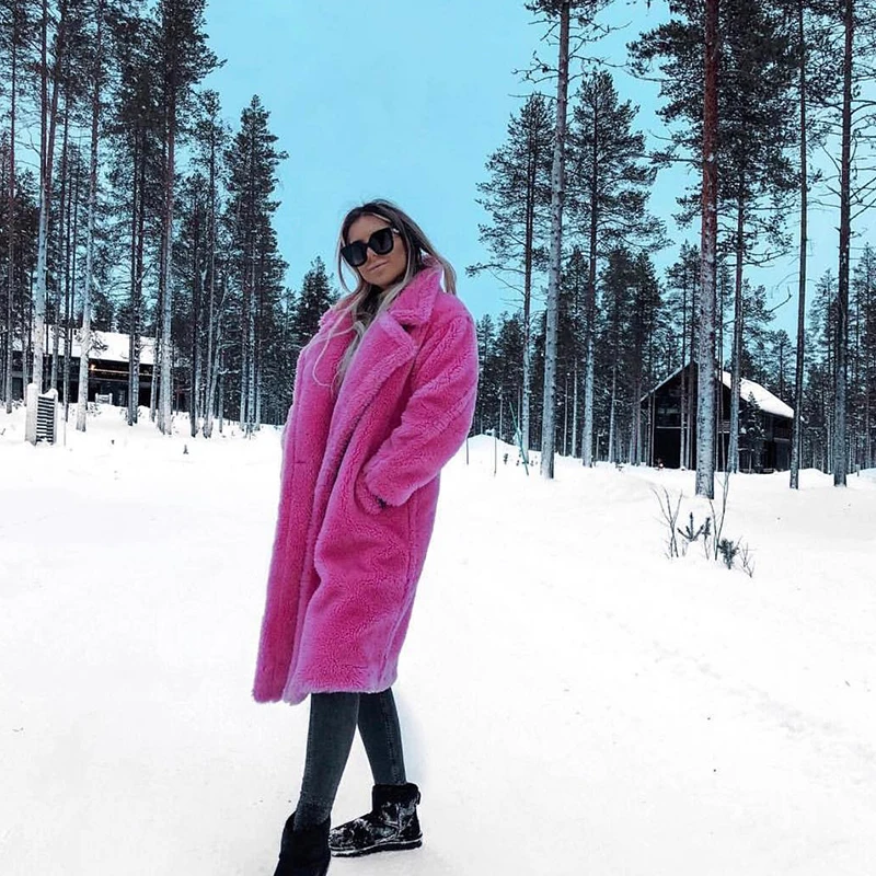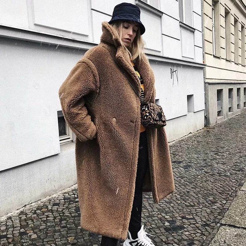 Женское пальто из искусственного меха, теплая куртка оверсайз из овечьей шерсти, длинное пушистое пальто для улицы, зима 2021
