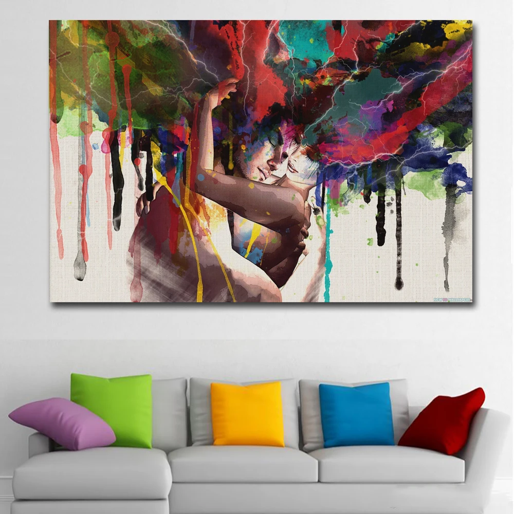 Абстрактные обнимающие картины для влюбленных на холсте акварельные...