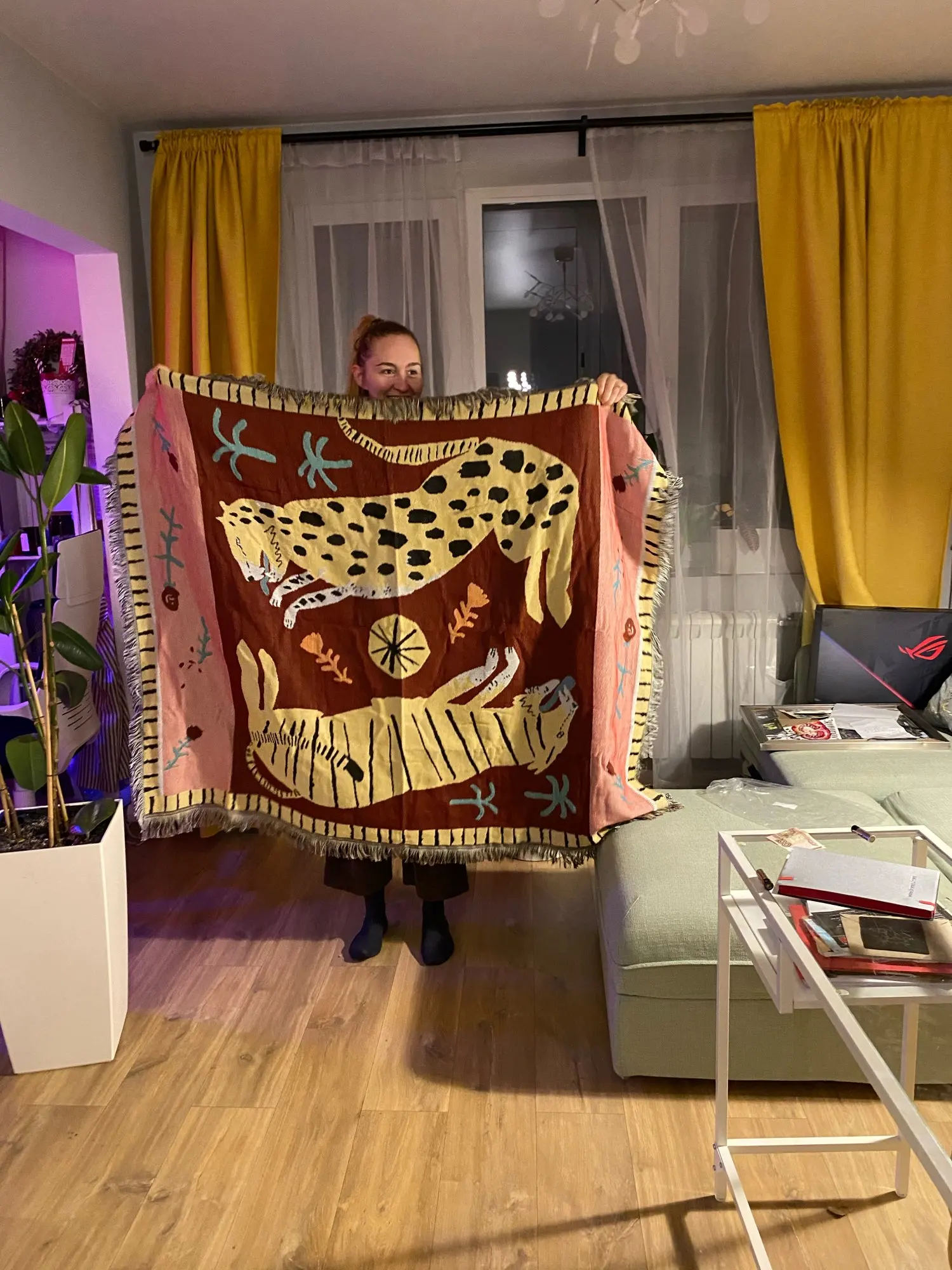 Плед отправили очень быстро, на следующее утро, после оформления заказа, дошёл до Воронежа за 2,5 недели. Ставлю 4 звёзды, а не 5, потому что это плед, а не ковер или плотный гобелен. Ещё плед тускнее, чем на фотографии в описании, может быть в силу того, что в описание фотка обработана. Так нормально, стоит своих денег, хоть и не совсем то, что я ожидала.