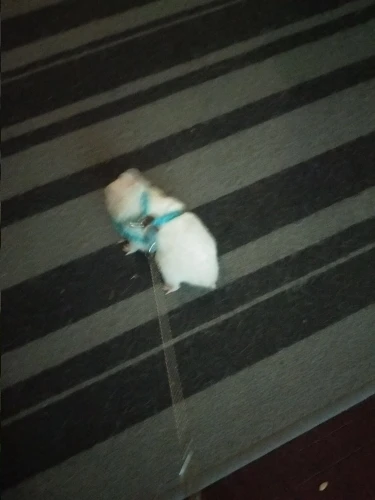 Поводок не очень удобный, мало в нем ходит, переваливается как мишка и устает...