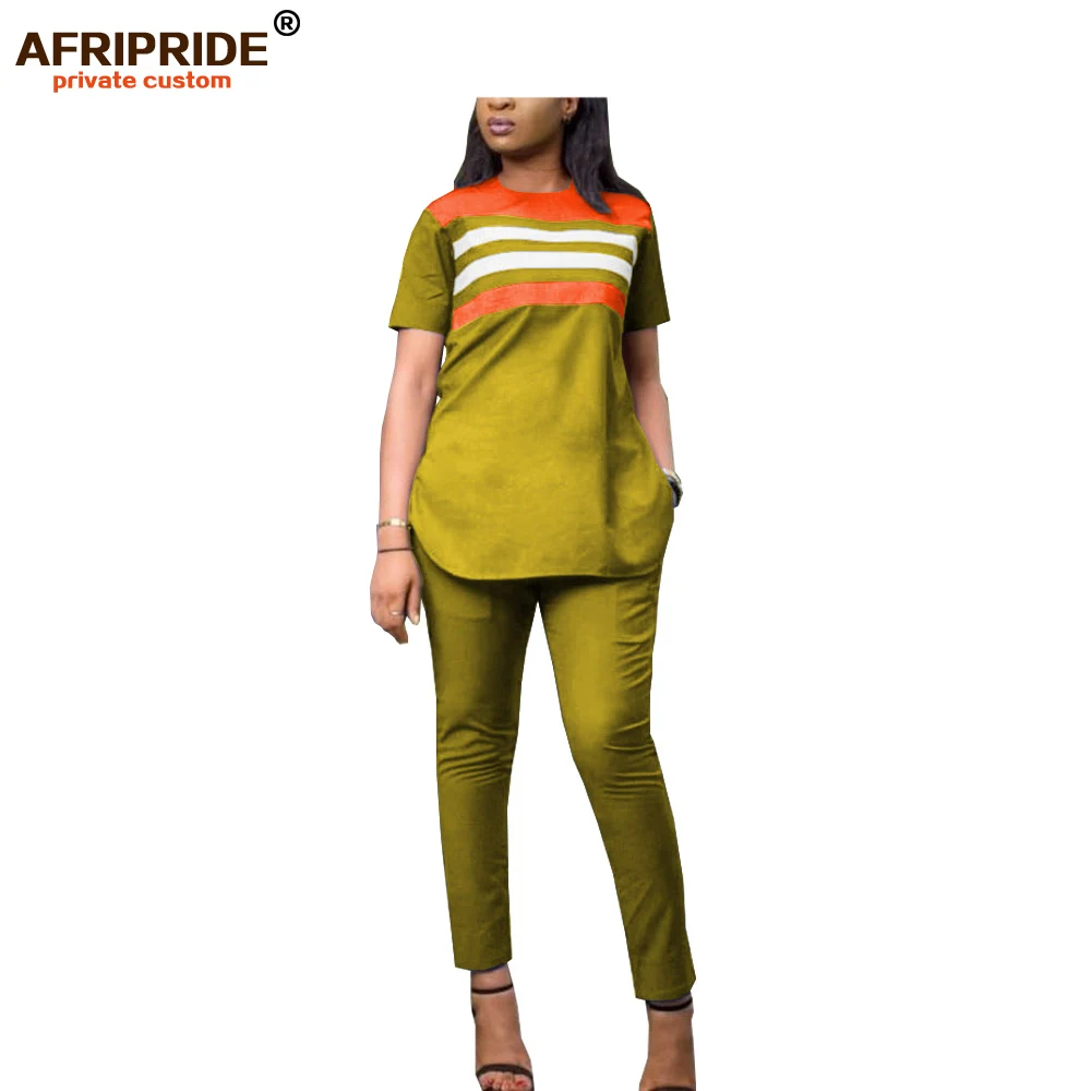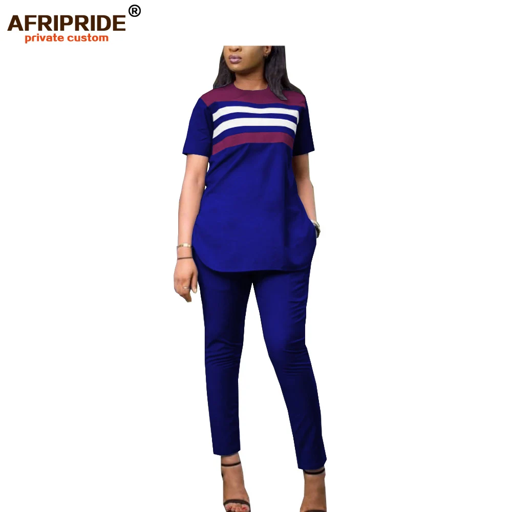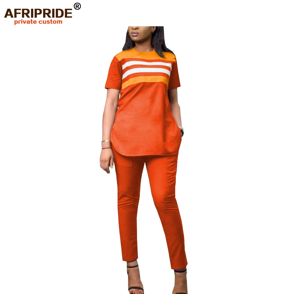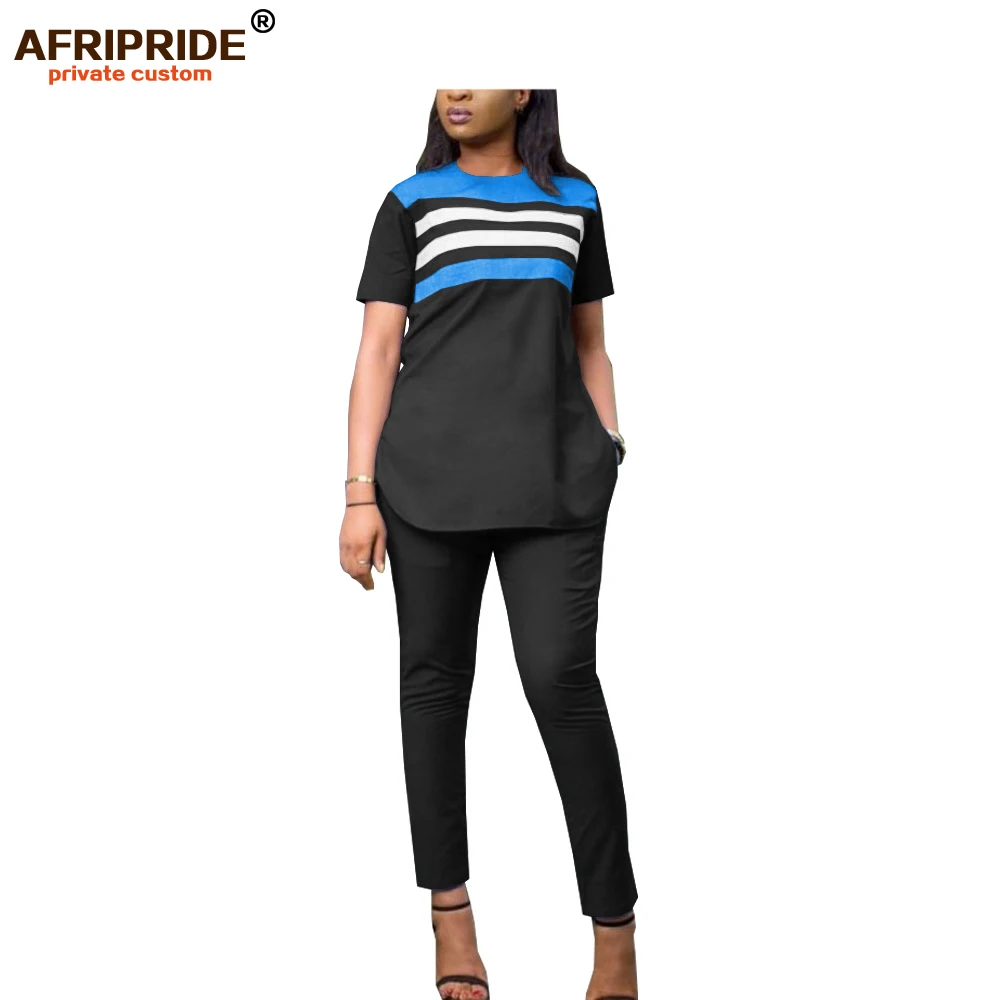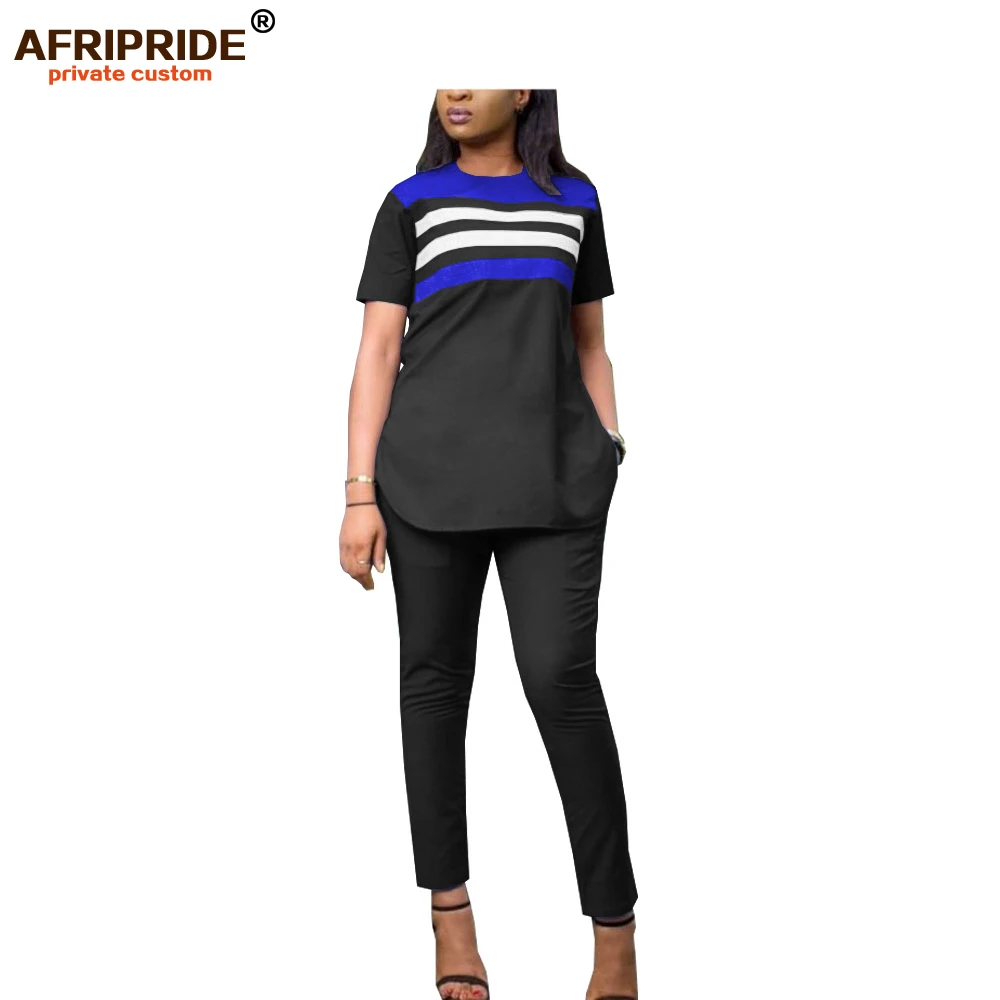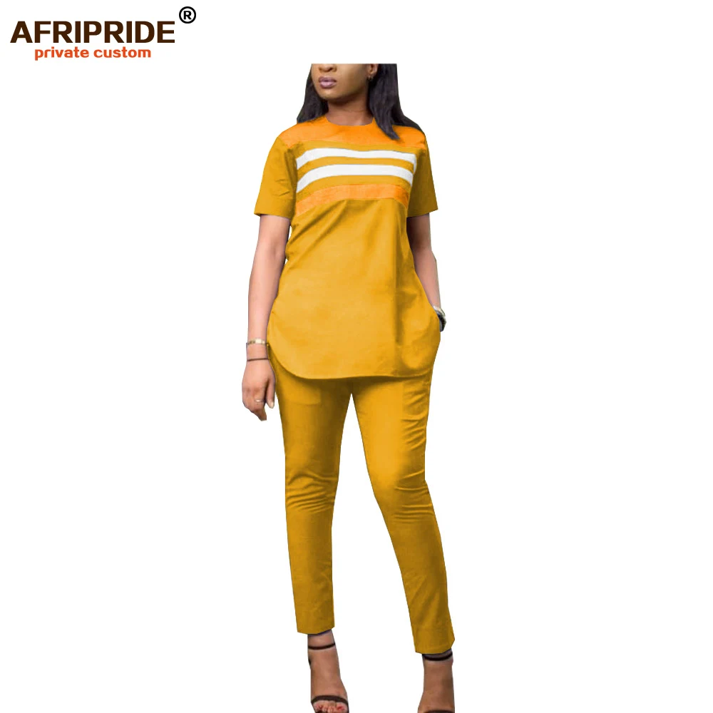Женский комплект из двух предметов, Африканский наряд 2019 + женские рубашки с цветочным принтом с коротким рукавом и карманами, AFRIPRIDE A1926008, брюки из Анкары