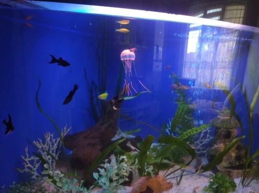 замечательная медуза!! в аквариуме леска не заметна,как настоящая!! только очень долго шла посылка