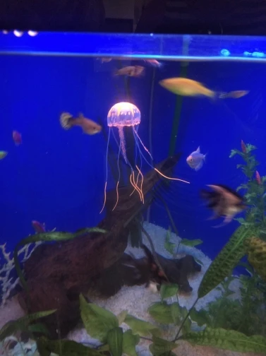 Продавец писал что Аквариумная медуза светящияся, оказалась - нет(!) - обычная селиконовая игрушка. Интересная но не светится! С продавцом не общалась.