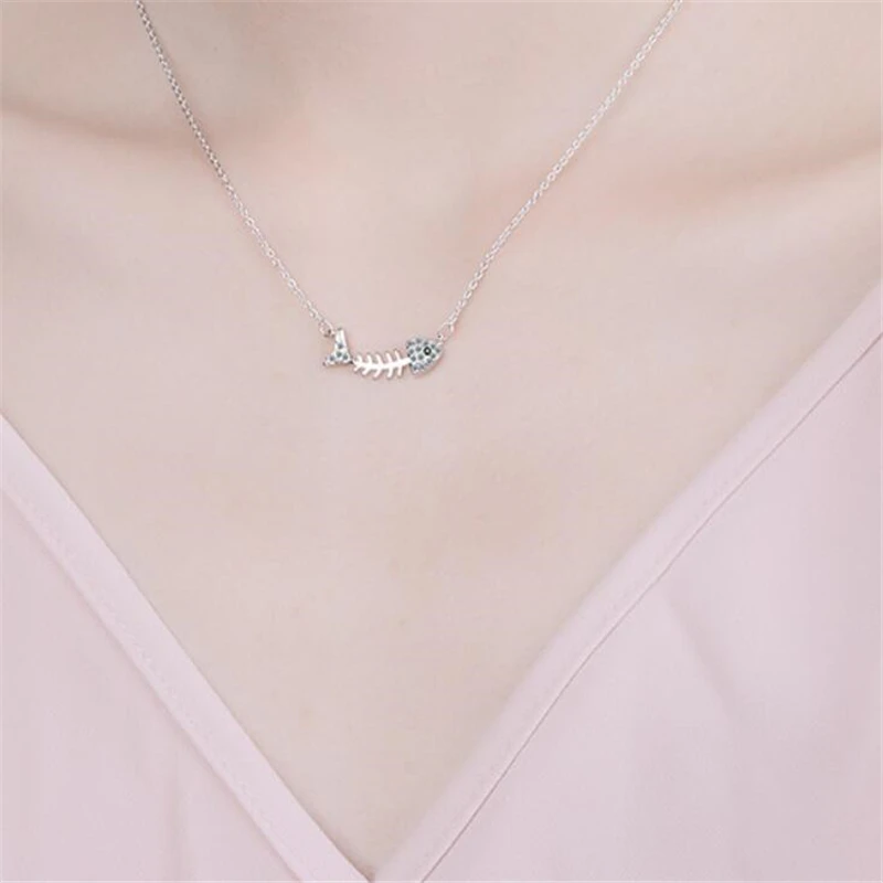 WYEAIIR Циркон рыба кость сладкое искусство крутой серебряный цвет цепь ключицы Женское Ожерелье