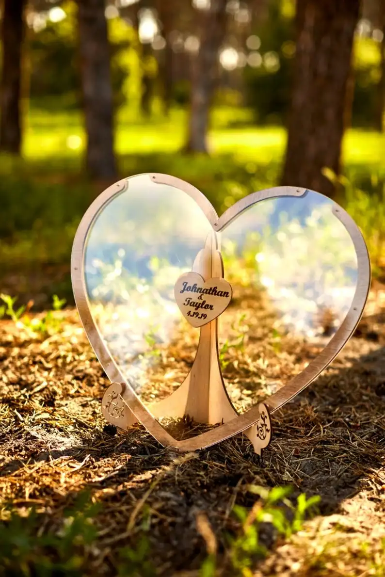 Гостевая книга в форме сердца, гостевая книга с деревянной рамкой, ...