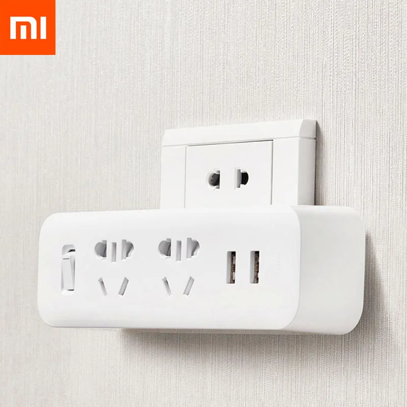 Дорожный адаптер питания Xiaomi Mijia, портативный конвертер для дома и офиса, 5 В, 2,1 А, 2 розетки, 2 USB-порта