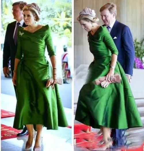 Винтажное платье для матери невесты, зеленое платье с открытыми плечами, длина до половины икры