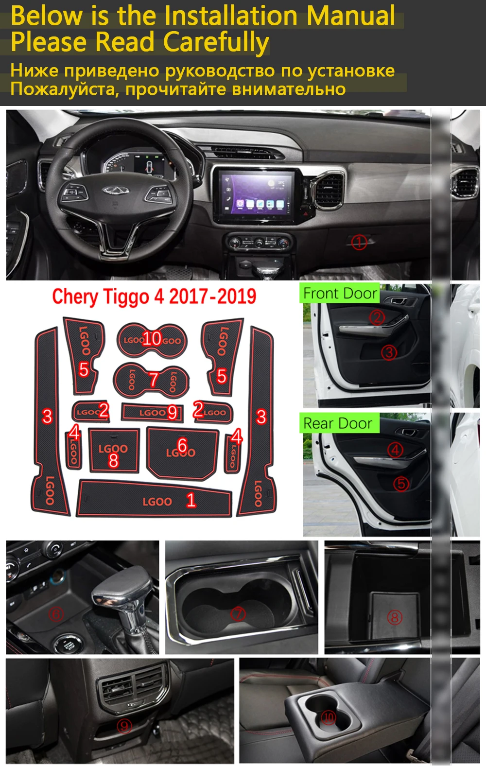 Противоскользящие резиновые накладки на чашки для Chery Tiggo 4 Tig...