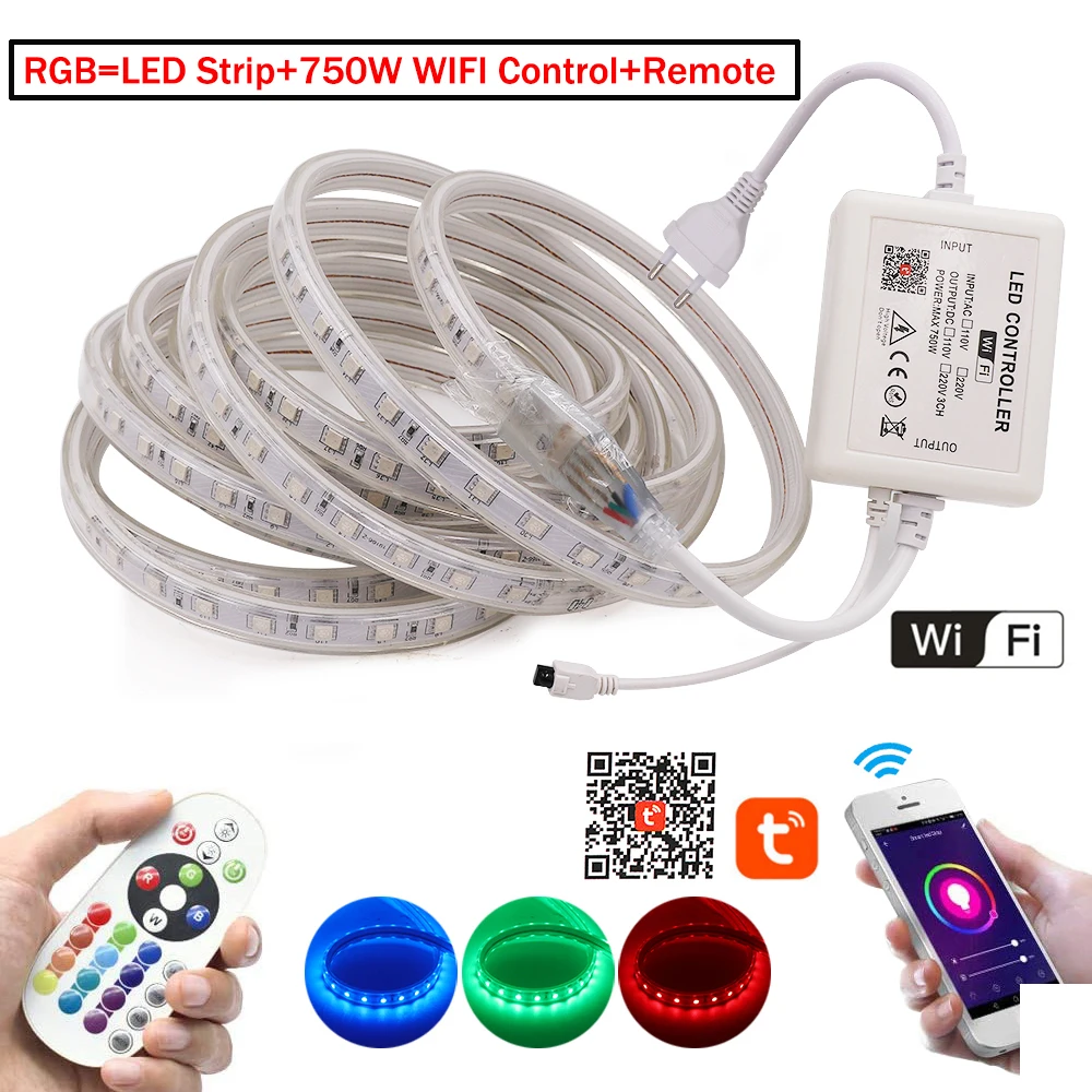 Светодиодная ленсветильник 5050 V 220V 60LED WIFI RGB белая гибкая светодиодная лента водонепроницаемая 110 светильник s с переключателем питания для ЕС и США