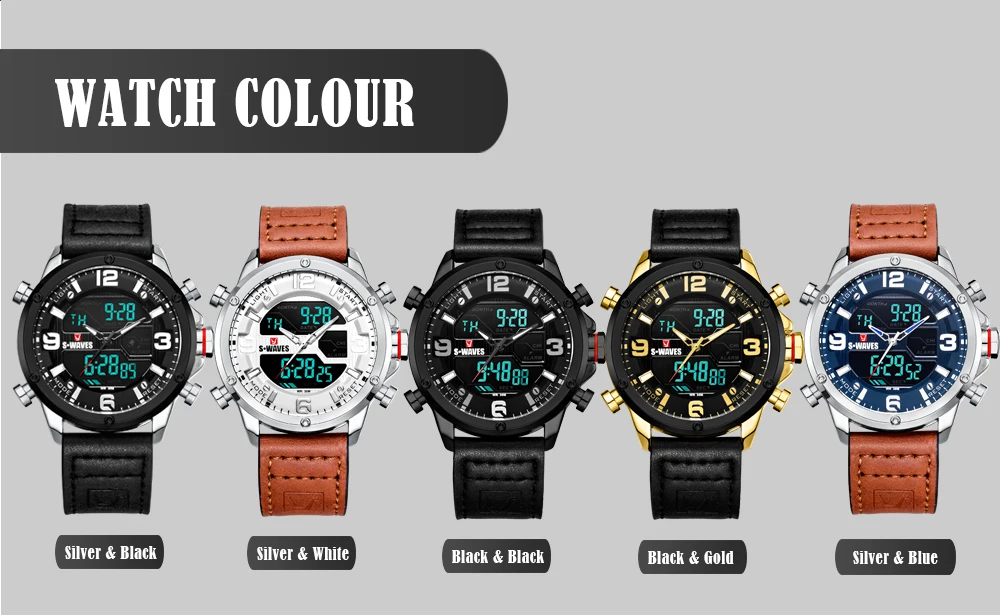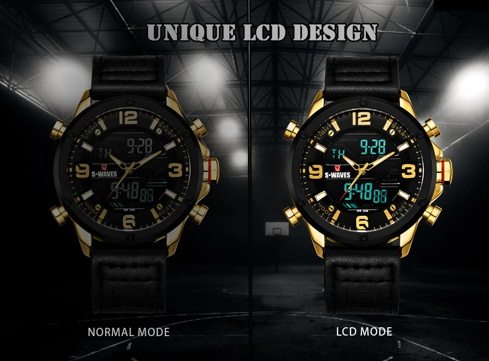 Часы SWAVES мужские, армейские, с двойным дисплеем, ЖК-дисплеем, водонепроницаемые