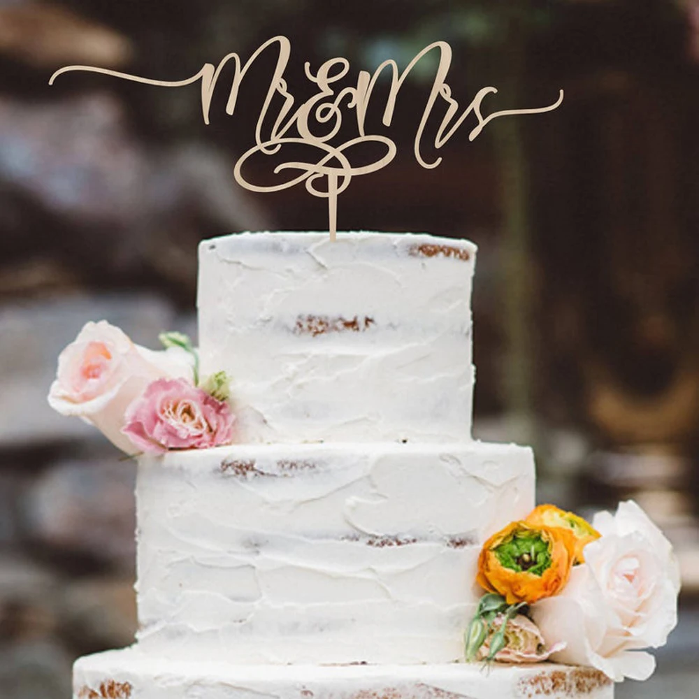 Mr Mrs свадебный торт Топпер с деревянный акрил торт Топпер Уникал...