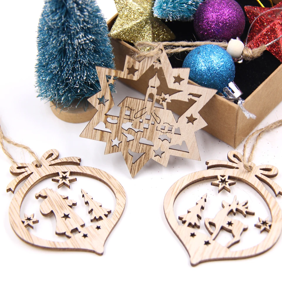 6 шт. креативные полые рождественские деревянные подвески, украшения из дерева, рождественские украшения, рождественские украшения, подарки для детей