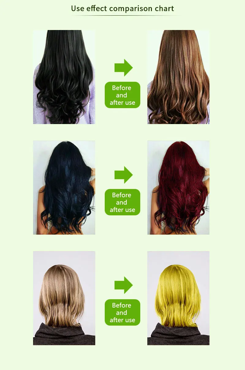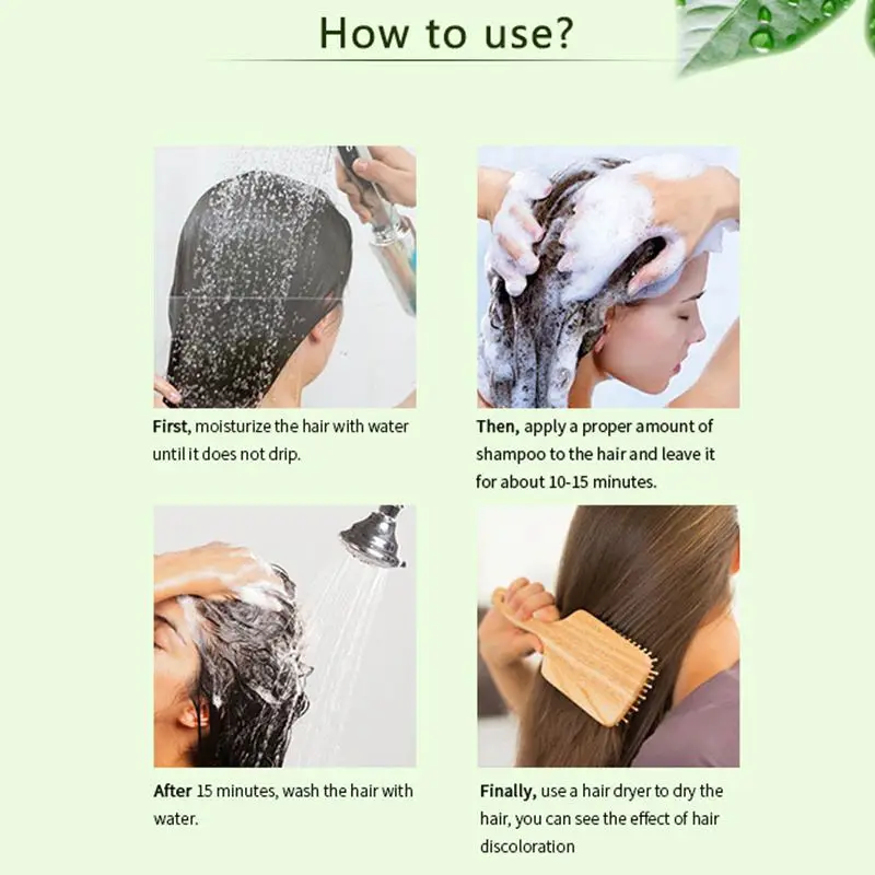 1. Перед использованием убедитесь, что волосы деи. 2. Наденьте пластиковые перчатки перед открытием пакетика. 3. Экструдированный крем равномерно смешивает их и aooly на волосах. 4. Хорошо массируйте волосы в течение 5 мин. Шампунь выкладывается на волосы. 5. Высушите волосы на краску.