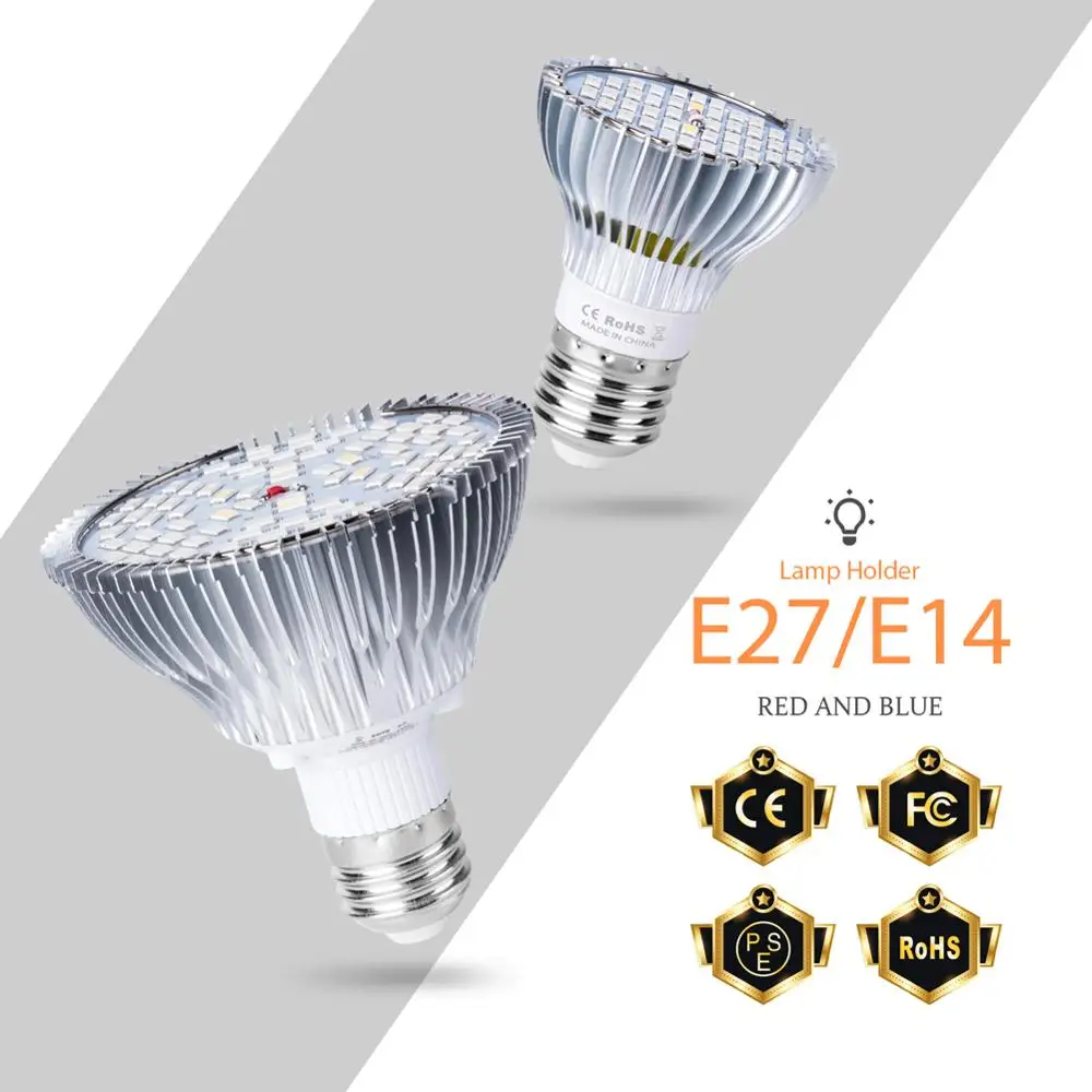 Светодиодная фитолампа E27 E14, фитолампа полного спектра светильник выращивания растений, цветов, саженцев, AC85-265V