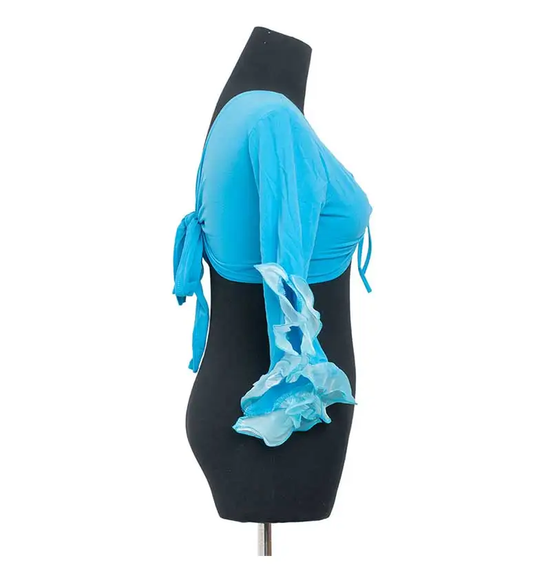 Женский костюм для танца живота, короткий топ с запахом и шортами