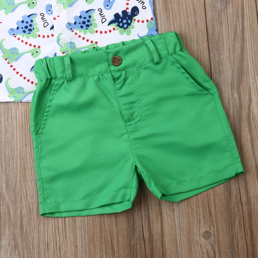 Citgeettлетняя рубашка для маленьких мальчиков из 2 предметов топы с динозавром + штаны зеленые шорты пляжная одежда комплект джентльмена