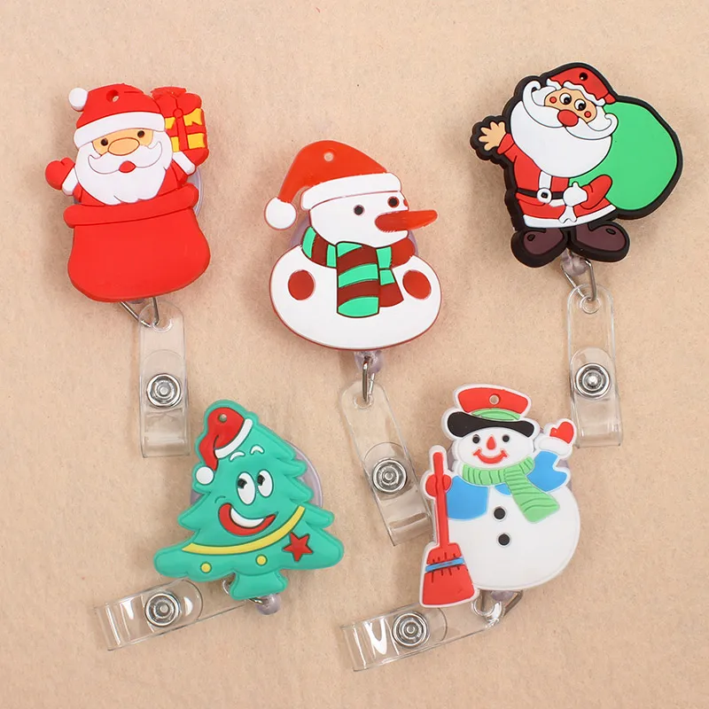 Новая забавная Рождественская елка и Санта-Клаус Выдвижная Тяговая катушка для значка шнур для ID Имя карта-метка держатели значков для детей