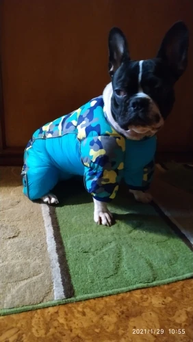 Комбез очень хорош за свои деньги. До Санкт-Петербурга за две недели. На француженку, девочку 13кг сел отлично. Не висит, не обтягивает. Материал не очень прочный. Предыдущий комбез (от другого продавца, но такой-же) пострадал от лап другой, крупной собаки. Причём это была не драка, а просто игра. По дороге посылку вскрыли, видимо поняли что не интересна и запихали обратно. Потом ещё и акт приложили.