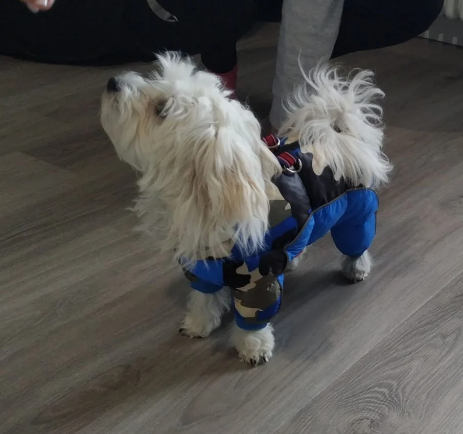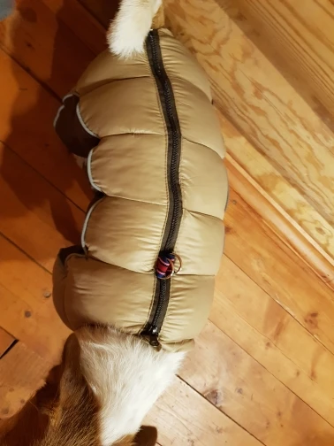 Курточка супер! Эта вторая, для второй собачки, до этого тоже заказывала, только синюю, мальчишке. Очень удобна в использовании - продумано и отверстие для причиндалов мальчишек, и рукава длинные - не пачкаются лапы до пуза, и замок на спинке - удобно одеваться-раздеваться. Есть светоотражающие полосы вдоль всей одёжки, у синего светятся сильнее, чем у красного. Прокладка очень тёплая - на холодную зиму даже пойдёт. Спасибо большое продавцу и производителям! Весьма рекомендую!