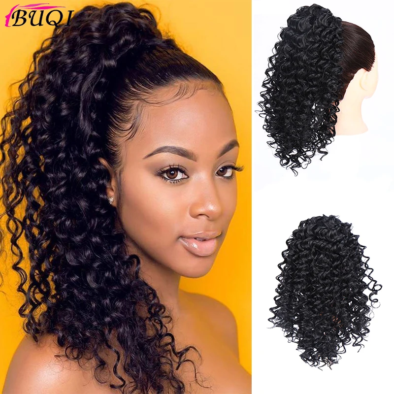 Длинный афро кудрявый шнурок BUQI, 12 дюймов, синтетический накладной хвост, наращивание волос, хвост, Африканский, американский пучок