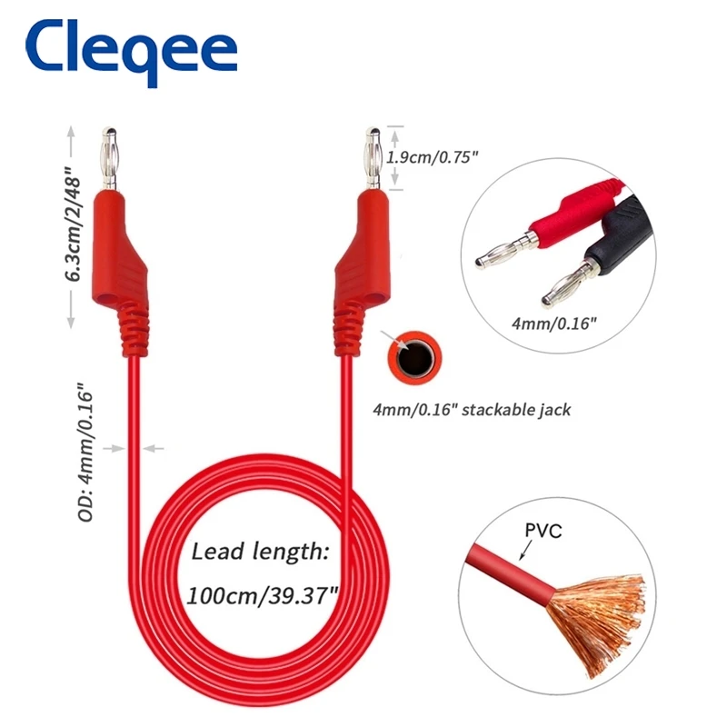 Cleqee P1036 5 шт. 1 м Штабелируемый 4 мм штекер типа банан штекер к штекеру типа банан мультиметр Тестовый Кабель 1000 В15 А 5 цветов