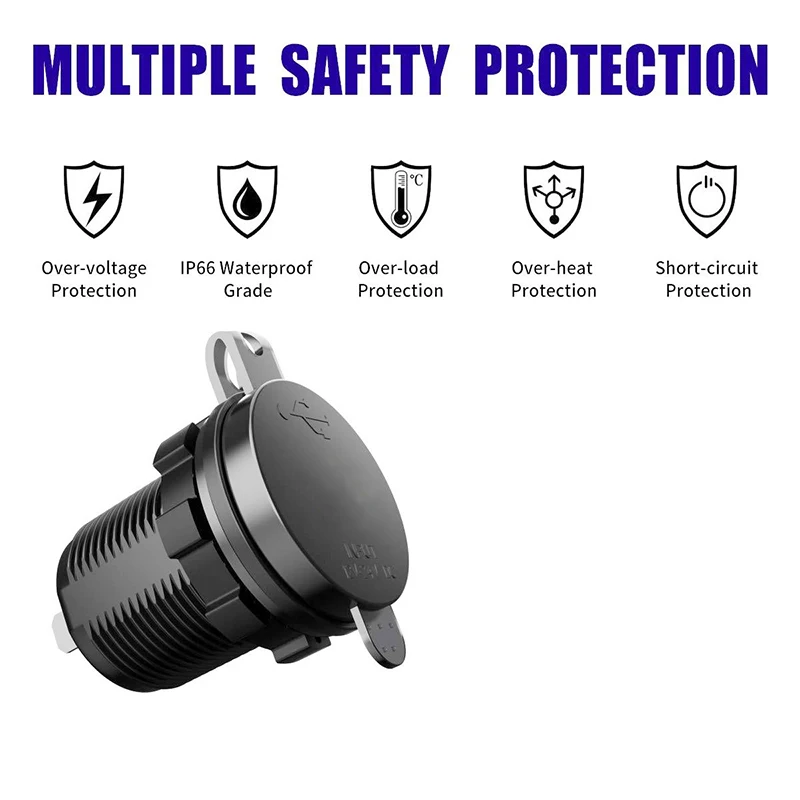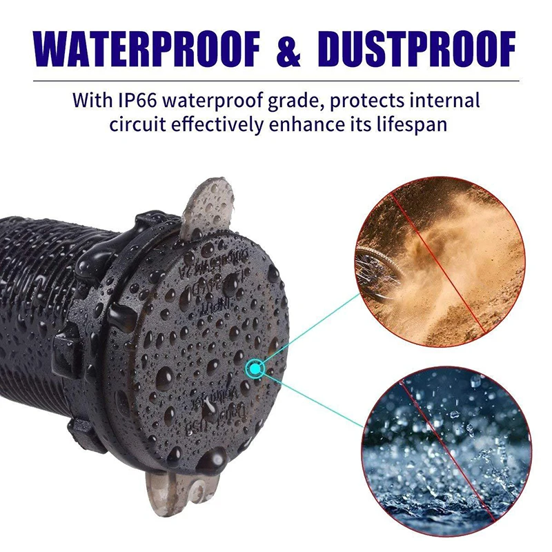 Двойной usb-разъем для зарядного устройства, водонепроницаемая розетка, 2.1A, 2.1A, с вольтметром и проводом, Встроенный предохранитель 10A для 12-24 В автомобиля, лодки, мотоцикла