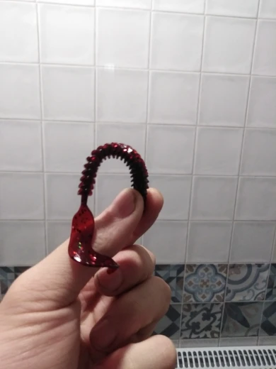Доставили за 25 дней.Всё как в описании.На растяжение прочные.Упаковано в пакет с застёжкой,есть легкий запах похожий на аттрактант.У приманки длинный мягкий хвостик,думаю игра твистера будет очень хорошей.Осталось опробовать на рыбалке.Рекомендую.