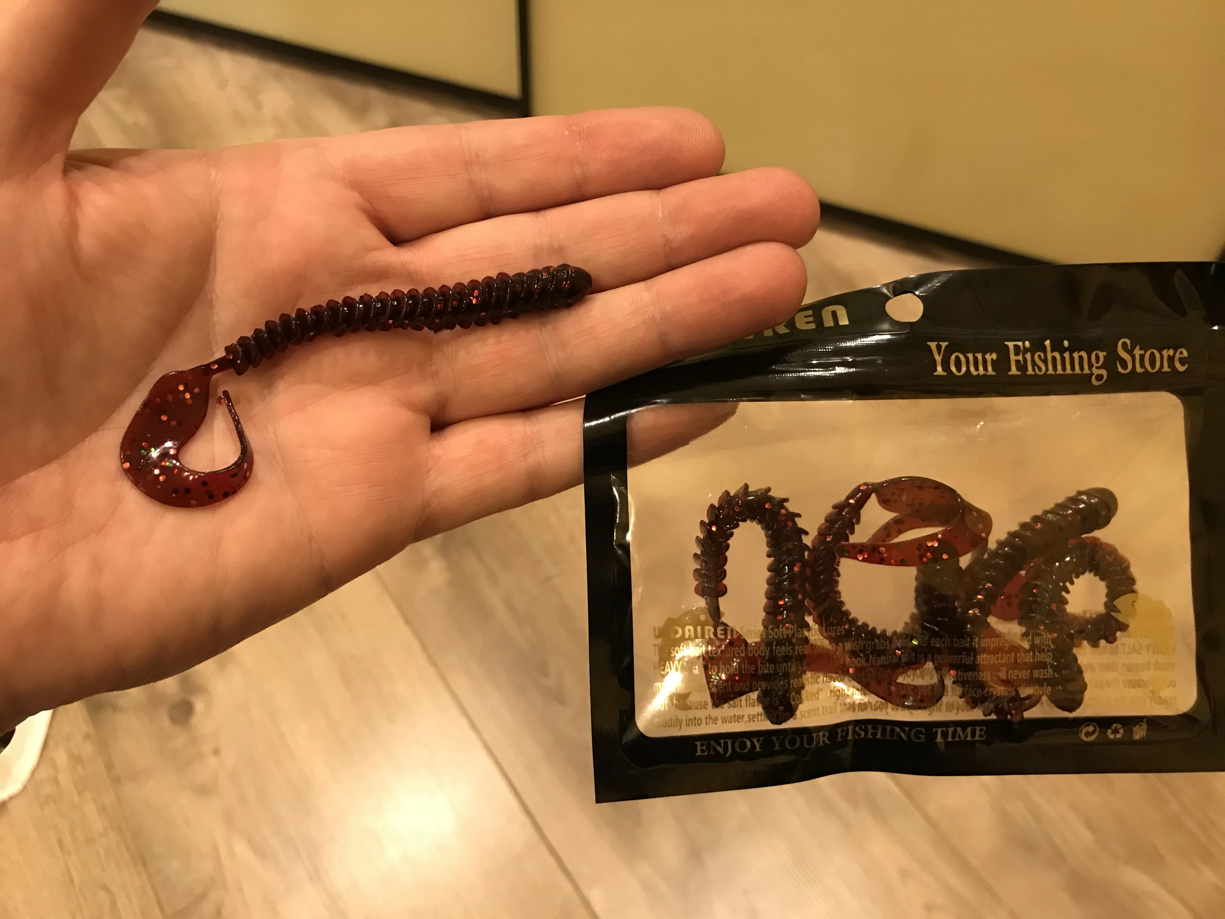 Всем доброго времени суток. Хотелось бы немного рассказать про товар, который мы все вместе тут покупаем. У магазина WDAIREN покупаю резину уже не первый раз, да и это скорее мой основной магазин по закупке силиконовых приманок. Если вы покупаете съедобный силикон,то можете быть уверены что с ним будет все в порядке, этот силикон довольно мягкий, но при этом быстро не портится(рвётся от крючков, поклевок и прочее), в силиконе присутствует соль и довольно яркий запах креветки. Приманки очень уловистые, брал разных размеров, на окуня, щуку, судака, так как при ловле делаю упор именно на эту рыбу, и хочу сказать что работает силикон отлично, все что покупалось было разловлено уже на первой рыбалке, все приманки соответствуют своему описанию, цвету, форме и фотографиям. И да чуть не забыл про главное, приманки пробудут в пути около месяца. По крайней мере до Самары они доезжают за 3 недели. Думаю что я достаточно рассказал про приманки, а продавец отзывчивый, отвечает уже через пару часов