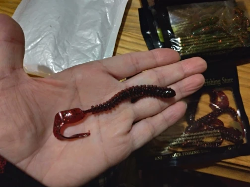 Силиконовые приманки очень мягкие, длина точно как в описание. С нетерпением жду нового рыбаловного сезона, что-бы разложить их))