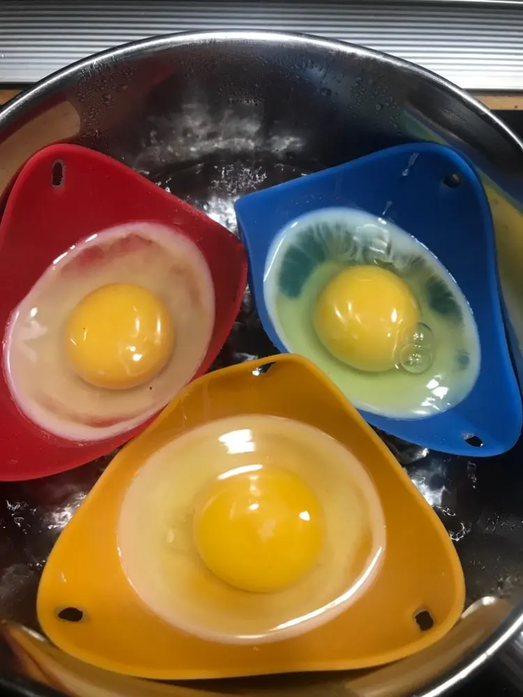 Лучшее изобретение в веках! Вы можете увидеть, как приготовлено ваше яйцо. Хотите мягкое вареное или жесткое вареное изделие? Просто протрите яйцо чайной ложкой и проверьте! Вы также можете добавить соль и перец, прежде чем варить яйца! Просто положите силиконовые Котлы в кастрюлю, разбивайте яйца в них, добавьте соль и перец, добавьте в кастрюлю холодную или кипятящую воду до тех пор, пока котлы не поплавают, и пусть ваши яйца вскипят! Они будут готовы в течение трех-четырех минут. Затем вы можете удалить их из котла или съесть прямо из него!