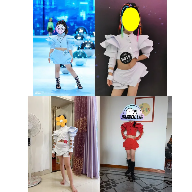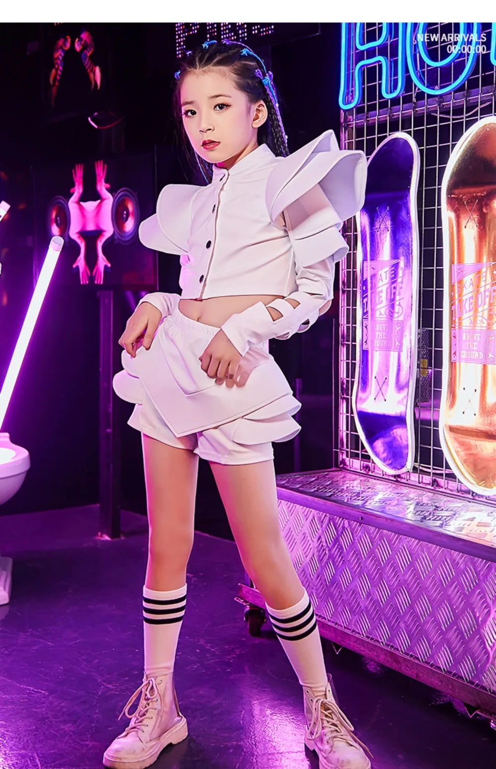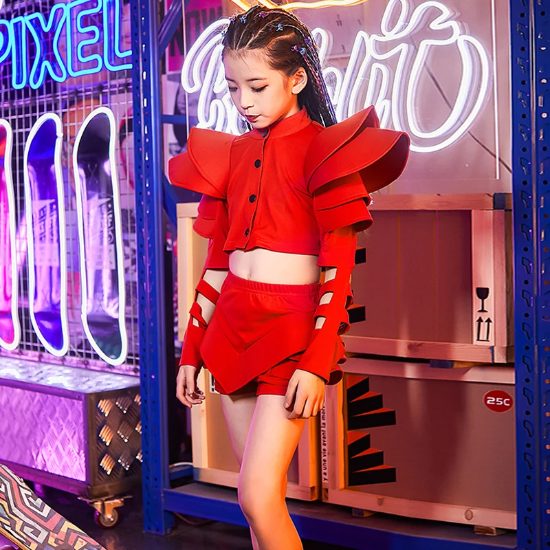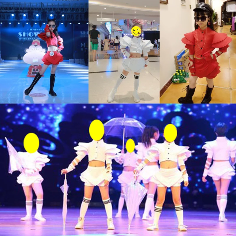 Костюм джазовый для девочек, детский костюм в стиле хип-хоп, красныйбелый, для выступлений и представлений в уличном стиле, одежда для подиума, DQL1888