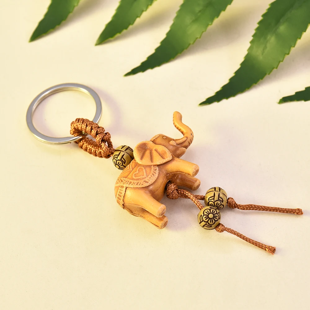 Брелок для ключей с резьбой в виде слона для женщин и мужчин, брелок с религиозной цепочкой, бижутерия, милый