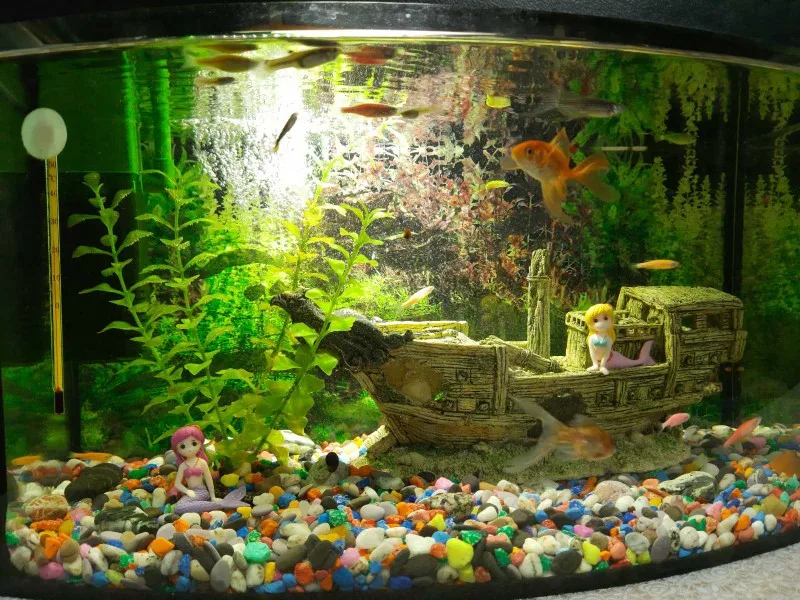 Пластиковый продукт и не стоит внутри аквариума, он выходит на воду