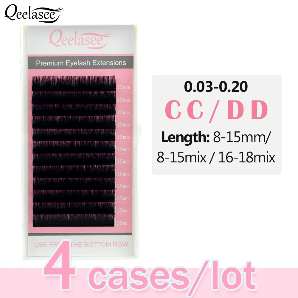 Ресницы Qeelasee из искусственной норки для наращивания, индивидуальные мягкие ресницы из искусственной норки для макияжа, 4 лотка CC DD