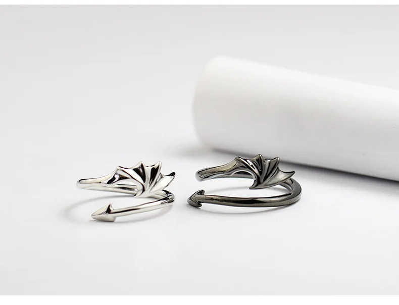 Титановый, в стиле панк коакума, маленький дьявол, дракон, готический злый вампир, ангел, кольца крылья, Открытое кольцо, украшение для вечевечерние на Хэллоуин, подарок