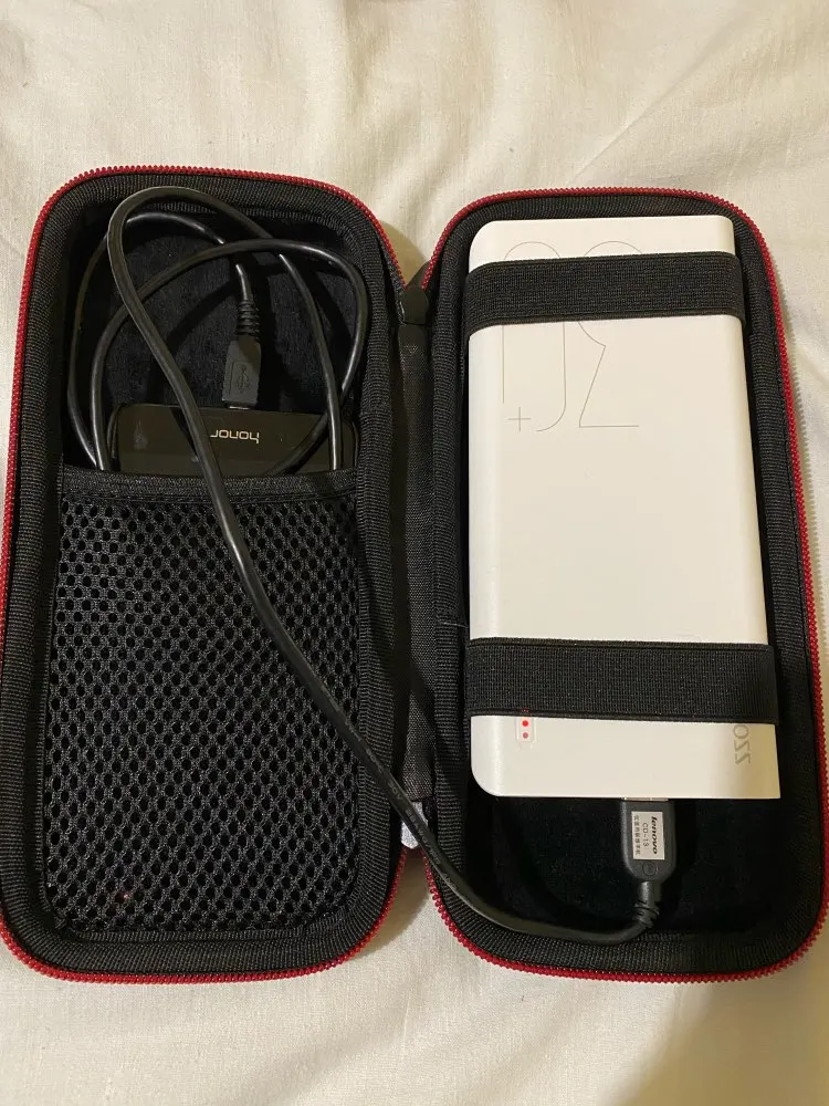 Кейс сам по себе хороший, поуэрбанк на 10 аккумуляторов 18650 вошёл как к себе домой. Есть место для мелочи всякой, шнуры, карты памяти И Т.д. Но для того, чтобы подключить кабель USB, надо вытаскивать край поуэрбанка из кейса, что неудобно.